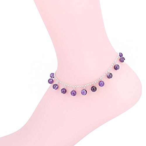 STUNNING- Amethyst gives a glow of color and sophistication. This item features a spring ring closure and an extender for adjustable wearing and a comfort fit. This bracelet will be secure on your feet while in the ocean or in the pool.