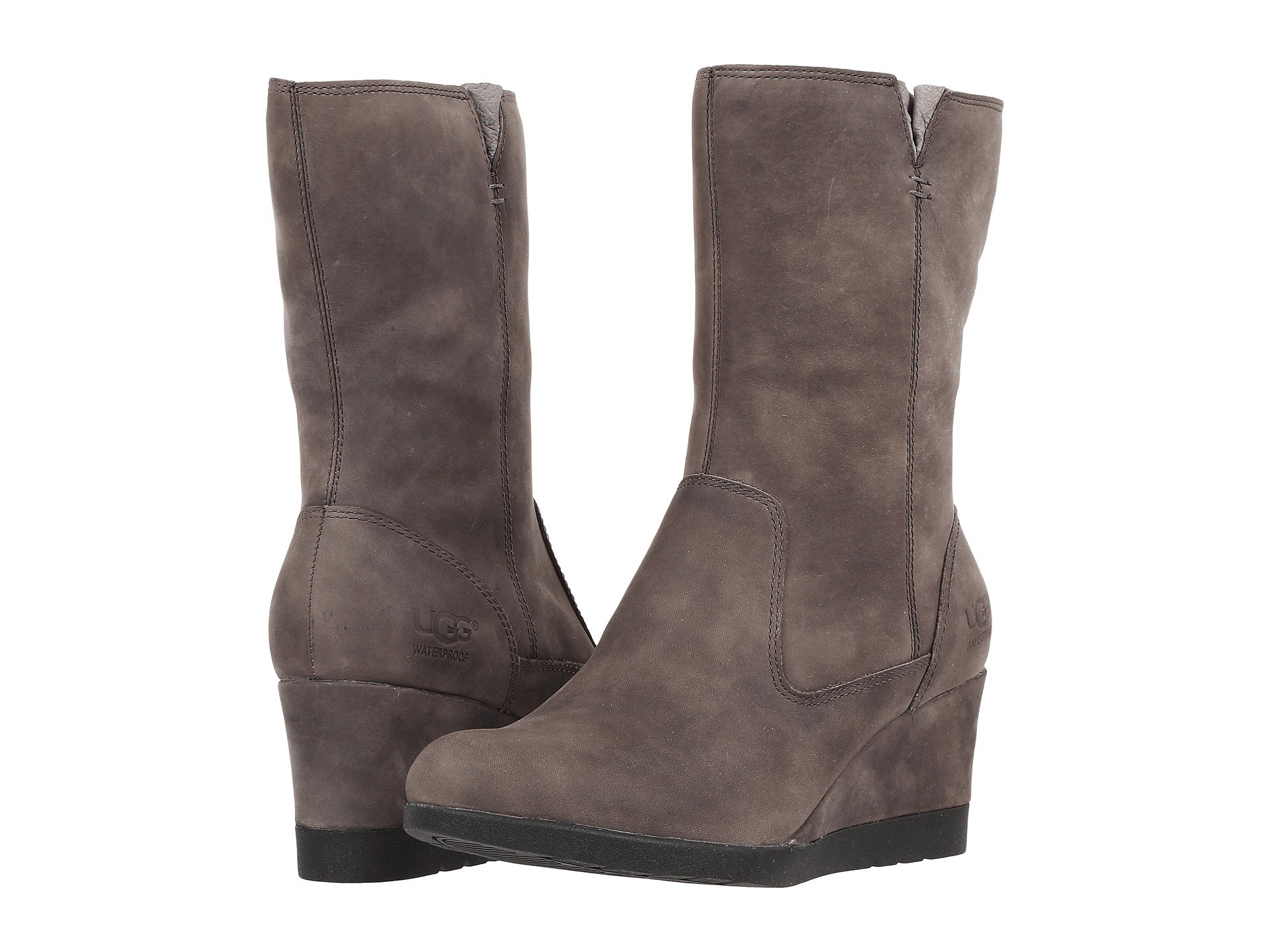 | Product Information SKU: #8906053This item is subject to quantity limitations.Keep your wardrobe weatherproof with this classic and cozy UGG? Joely boot.Waterproof leather upper.Gusseted top shaft. Interior zipper closure.Moisture-wicking, brushed twill lining.Heel lined with 7mm curly UGGpure™ wool.Reflective Thinsulate™ insole.Molded rubber outsole for maximum traction.Imported.Real sheep fur or lamb has been artificially dyed and treated. Fur origin: Australia, European Union or United States.Product measurements were taken using size 7, width B - Medium. Please note that measurements may vary by size.Measurements: Heel Height: 2 1?2 in Weight: 15 oz Shaft: 9 in Platform Height: 1?4 in |