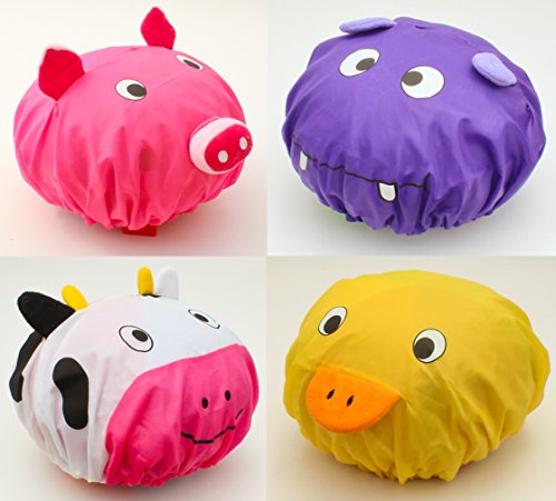 Have fun and enjoy your bath time while keeping your beautiful hairdo in perfect shape with our Fun Shower Caps! Choose from Hippo, Piggy, Moo and Ducky, all in their vibrant colorful glory. Unlike other shower caps on the market, Zoie Chloe's animal shower caps are made with soft Nylon and terry cloth. There are no sharp angles that poke at you and there is no nasty plastic and chemical smell. It's super comfortable to wear. Zoie Chloe offers 2 separate sizes for kids and adults. We don't believe in one-size-fits-all that in reality does not fit anyone. Our kid size is sized generously for kids from 2 to 10 years old, and adult size fits men and women from 10 to 110. Also available in 4-packs. Great value for family. 0 |