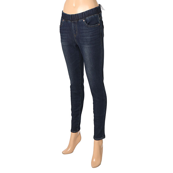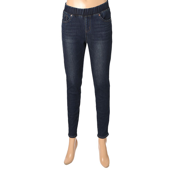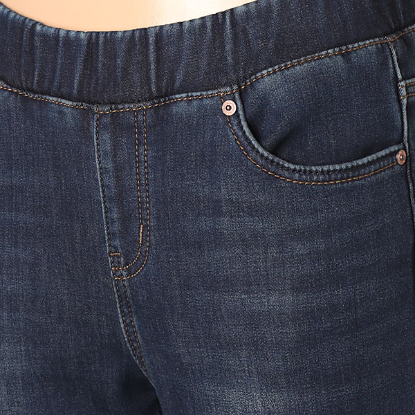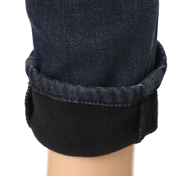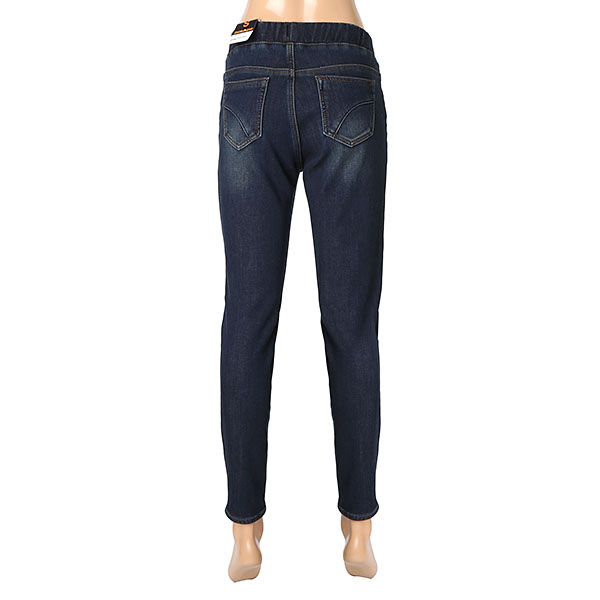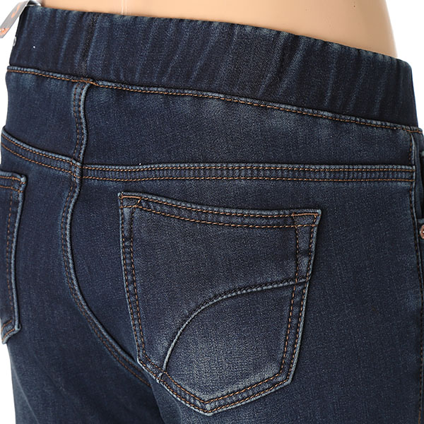 여성 오비밴딩 라운드 절개 캣브러쉬 워싱 퍼본딩 데님입니다.