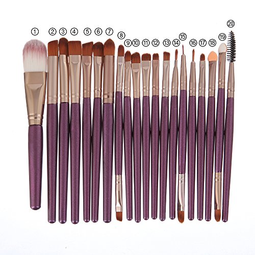 Angeltyr 20Pieces Professional Makeup Brushes Set - Foundation Eyeshadow Eyeliner Eyebrow Concealer Lip Brush (Purple)