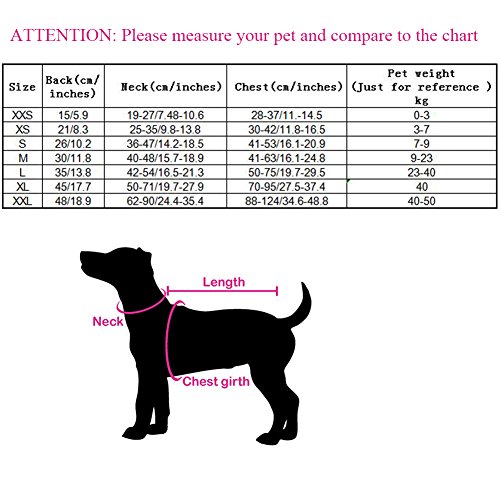 -. Feature : LIGHTWEIGHT POLYESTER MATERIAL:durable, comfortable and waterproof,this life jacket is suitable for pets, like dogs, cats and other pets / REFLECTIVE STRIPES:reflective strips for maximum visibility, that will keep your pets within your sight wherever they are in dark or water,convenient for you to locate your pet / ADJUSTABLE:around the girth and neck nylon straps and quick-release buckles are all can adjustable,heavy-duty yet more comfortable quick-release buckles fastening system around the belly and neck to keep securely fastened. / MESH UNDERBELLY DESIGN: good for quick drying and proper drainage / ATTENTION:see the size chart image,Please understand that there is no standard sizing system for pet life jacket. Please measure your pet and compare to the chart,Select the size that fits your pet life jacket