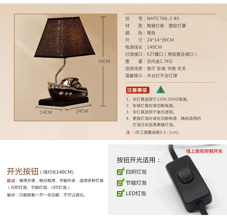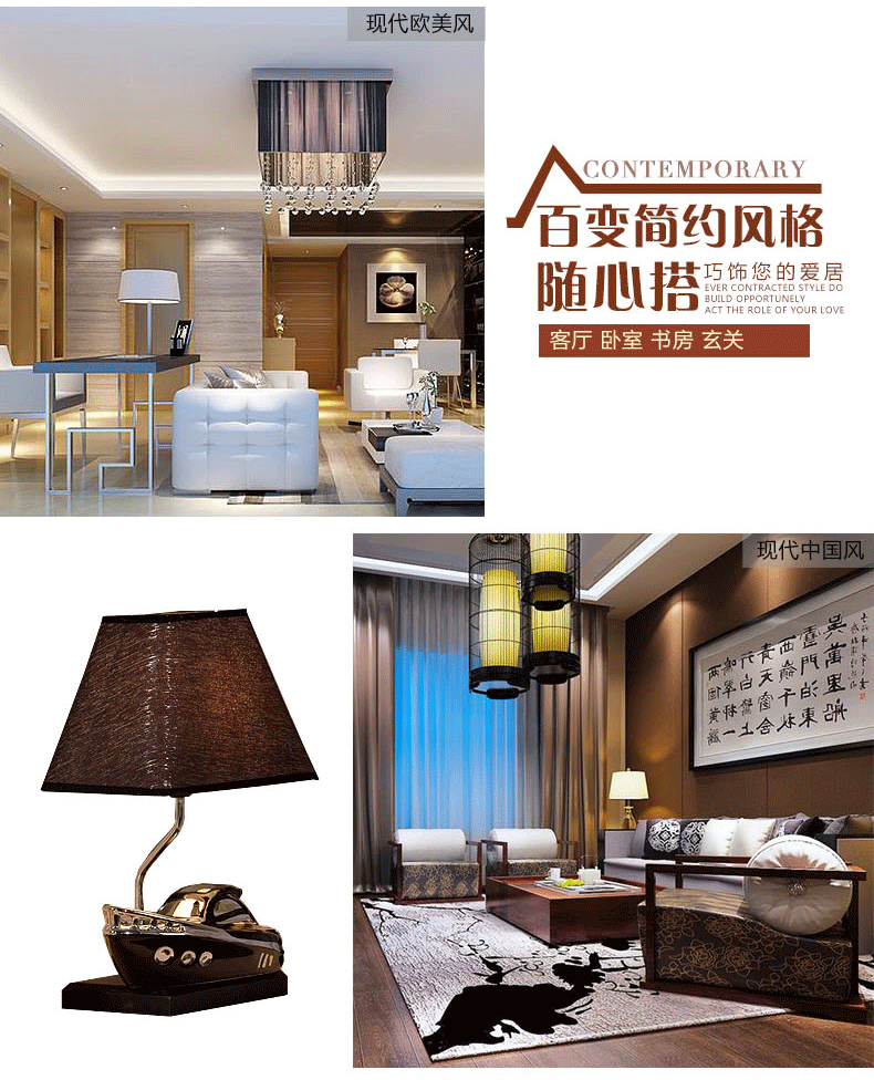 Luxury yacht lamp decoration style of modern ceramic decoration fashion bedroom bed decoration lighting