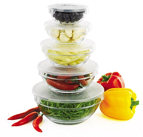 [Product Information]- DELUXE BOWL CONTAINER 5PC SET – This 5pc bowl container set is a must have in every home; glass look provides the kitchen table appeal.