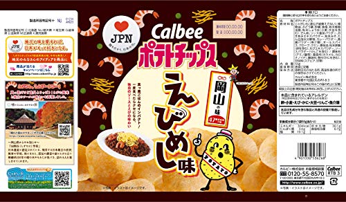原材料:じゃがいも(遺伝子組換えでない)、植物油、ぶどう糖、砂糖、食塩、粉末植物油脂、粉末しょうゆ(小麦・大豆を含む)、でん粉、ソース風味パウダー、おきあみエキスパウダー、粉末みそ、たん白加水分解物、カレーパウダー、魚醤パウダー(魚介類)、オールスパイス、クローブ、クミン、香味油、粉末卵黄(卵を含む)、えびエキスパウダー、ソースパウダー(りんごを含む)/調味料(アミノ酸等)、着色料(カラメル、カロチノイド)、酸味料、香料(かにを含む)、甘味料(ステビア、甘草)
