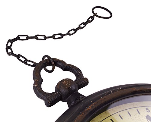 -. Binding : Kitchen -. Brand : Red Co. -. Color : Black -. EAN : 0689483161448 -. Feature : The antique design inspired by traditional pocket watch / Clock face is covered by glass to protect from dust and grime; comes with a 18" chain / Distressed black metal finish / Requires one(1) "AA" battery (not included) / Dimensions: 21"L x 17"D -. Label : Red Co. -. Manufacturer : Red Co. -. Model : 98HE -. MPN : 98HE -. PackageQuantity : 1 -. PartNumber : 98HE -. ProductGroup : Home -. ProductTypeName : HOME -. Publisher : Red Co. -. Studio : Red Co. -. Title : Vintage Pocket Watch Inspired Non-Ticking Wall Clock With Chain, Round -. UPC : 689483161448