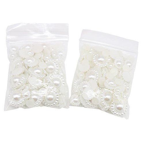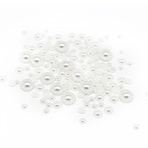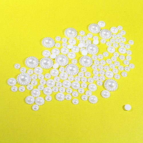 2x144pcs(2bags) Mix 9/12/20mm Size White Half Round Pearls Rhinestone Stone