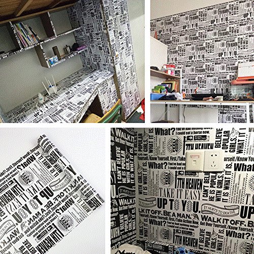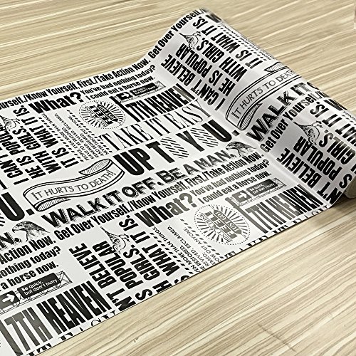SimpleLife4U Vintage Black White Newspaper Contact Paper Self-Adhesive Shelf Drawer Liner Bookcase Sticker 17.7 Inch By 9.8 Feet