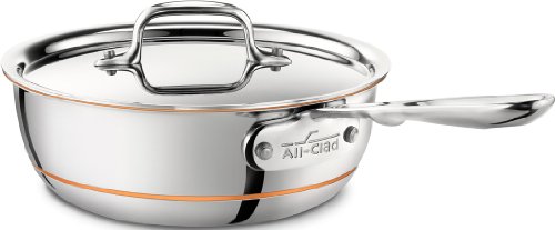 All-Clad 6212 SS Copper Core 5-Ply Bonded Dishwasher Safe Saucier Pan with Lid / Cookware, 2-Quart, Silver