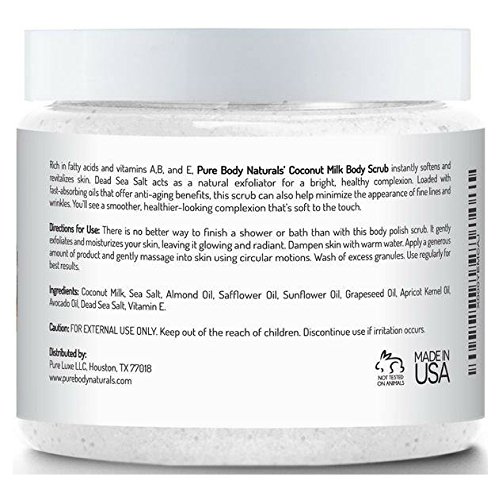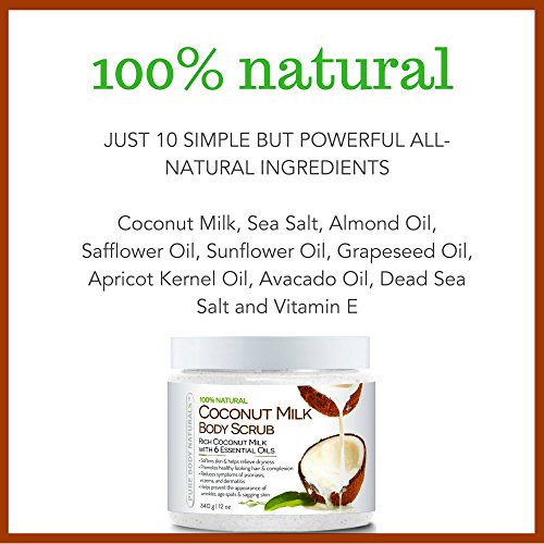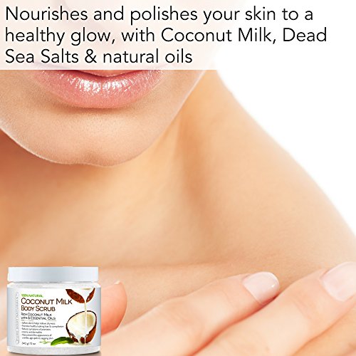 - Coconut Milk Body Scrub is simply formulated using high quality, natural ingredients like Coconut Milk, Dead Sea Salt + Essential Oils