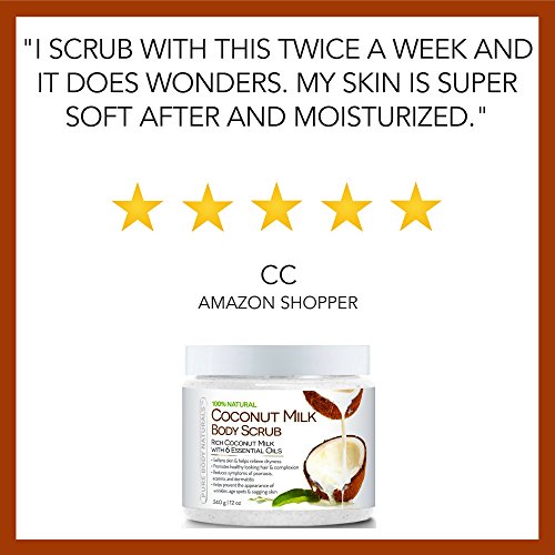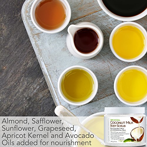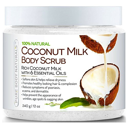 - Coconut Milk Body Scrub naturally exfoliates, moisturizes and removes buildup which clogs pores