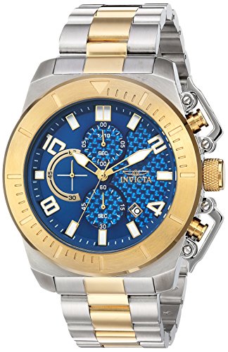 With excellence and style, the Pro Diver collection carries with it the quality that Invicta is known for while creatively moving forward in assembling the perfect look. The sporty design complements the warm, blue glass fiber dial, underscores the precise chronograph complication, and accentuates the luxurious 18K gold plating while propping up the strength of its spectacular 100 meter water resistance capability. Complete your collection with one today. This website is an authorized reseller of Invicta and each piece comes with the manufacturer warranty.Feature