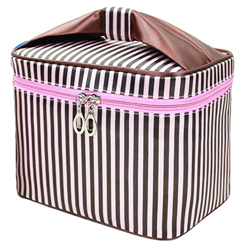 Makeup Bag, HOYOFO Women Portable Travel Cosmetic Bags with Brush Holder Make Up Bags,Coffee Stripe