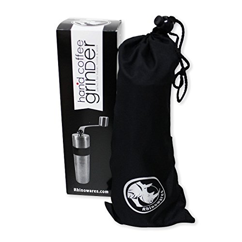 The Rhinowares hand coffee grinder is the perfect solution for grinding coffee "on the go". It's great for travel, work or even just at home.
