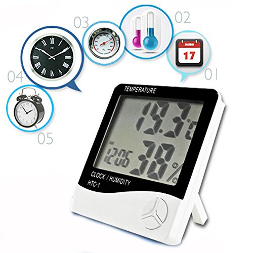 -. Binding : Kitchen -. Brand : Generic -. Feature : Economical way to monitor indoor or outdoor temperature and humidity / Displays temperature, humidity and time simulatenously / Clock & Calendar function (month and date); Desk-top placing or Wall Hanging. / Temperature scope of -10¡ãC--50¡ãC; Humidity range of detecting from 10% to 99% / Display features one-inch tall digital numbers. Powered by 1 x AA battery (not included) -. Label : Dolphin fashion -. Manufacturer : Dolphin fashion -. Model : M0110T2H8S -. MPN : M0110T2H8S -. PartNumber : M0110T2H8S -. ProductGroup : Home -. ProductTypeName : HOME -. Publisher : Dolphin fashion -. Studio : Dolphin fashion -. Title : Professional LCD Digital Temperature Humidity Meter Thermometer with Clock Thermo-hygrometer