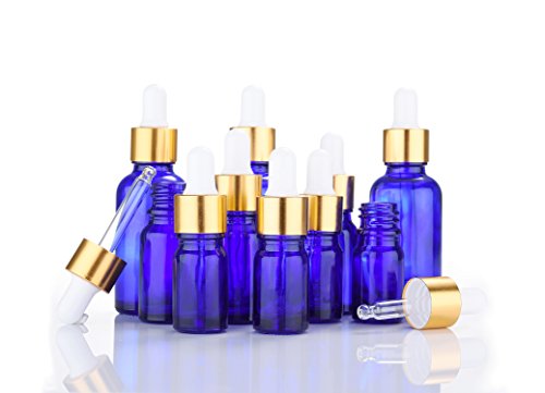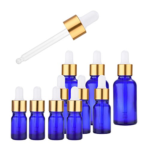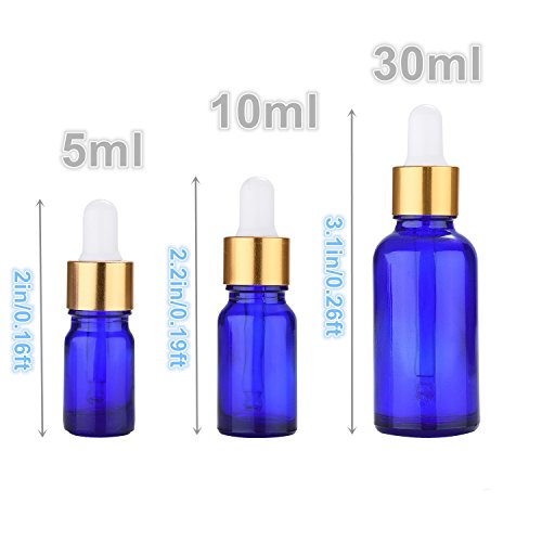 Kalevel 10pcs Blue Glass Bottles with Droppers Essential Oil Bottles Empty Leakproof Glass Eye Dropper with Waterproof Essential Oil Bottle Labels Stickers