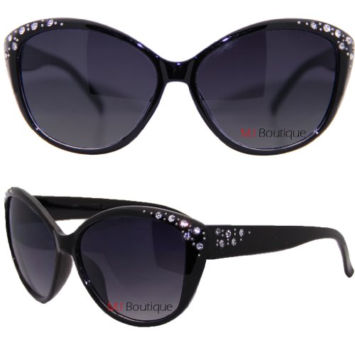 | Rhinestone Black Cat Eye Sunglasses Smoke Lens 80351RS |