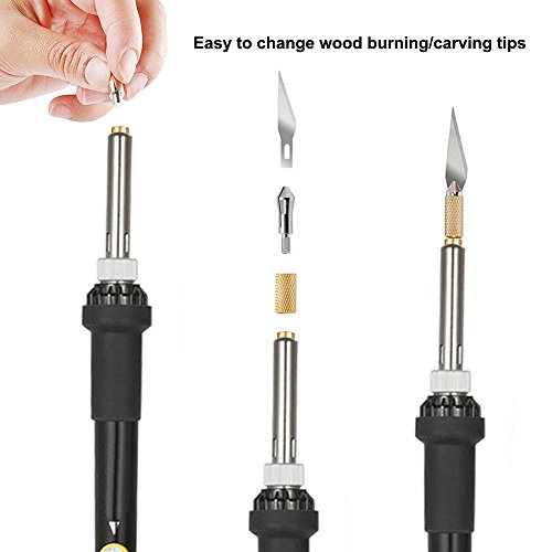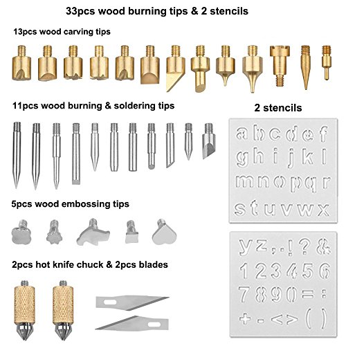 【Includes Everything You Need】Comes with a great variety of tips for different designs: 33 assorted woodburning tips, 2 stencils, and 2 hot knives, even a beginner can create beautiful designs in wood! A great starter kit for wood burning crafters, beginners or hobbyists alike.