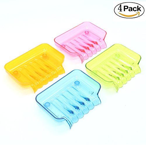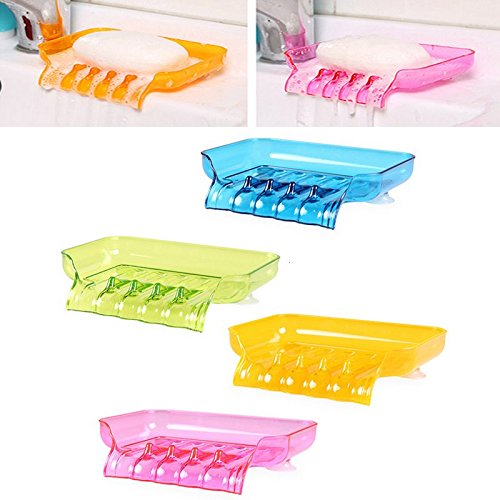 Pack Of 4 Plastic Waterfall Drain Soap Dish with Suction Cup For Bathroom,Random Color