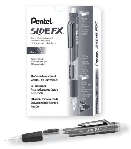 Pentel Side FX Mechanical Pencil, 0.5mm, Black Barrel, Box of 12 (PD255A)