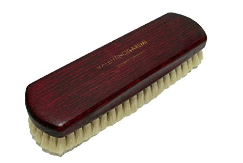 Product Description SUPERB TRADITIONAL SHOE SHINES BRUSH - traditional shape brush intended to regular shoe care tasks as polishing, shining or buffing for man or woman. Made in Germany with super soft real goat white hair and attached to a hard resign wood red stained handle the shoe brush will be a perfect addition to anyone's shoe collection as: oxford shoes, loafers, derby, broque, monks, high leather boots, etc.. SUPERIOR CRAFTED AND QUALITY BY GERMAN ARTISANS - The brush was developed and manufactured in Germany by the traditional brush manufacturer artisans, made with superior quality components. The natural organic goat hair will softly and gently perform the desired task on any of the footwear without compromising the leather of shoe or garments that is use on. Will clean successfully dry mud, dust, water stains, road grim, salt marks, dog or cat hair, dry foods, dry sauce, white marks RECOMMENDED AND SAFE TO ALL MATERIALS - Excellent cleaning and polishing results on all leather materials as smooth leather, suede leathers, nubuck, Gore-Tex, textiles, fabrics, etc.. Impressive shining results to all footwear types and highly recommended to military personnel, law enforcement, police crew, high end restaurant servants, orchestra and bands folks or just regular shoe care users. EXCEPTIONAL QUALITY SHOE CARE BRUSH - offered to all Amazon's valuable customers by Valentino Garemi, a small family owned business, focused to create and deliver only the highest quality of household products. Driven by passion and modesty, we committing to deliver excellent products to all our extraordinary customers. 0