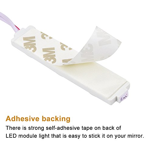 - WIDELY USE: IP65 waterproof mirror lights come with sticky 3M double sided sticker on the back for any shape of mirrors and smooth surface, not only for makeup and dressing mirror, but also closet, stairs, storage room, garage, wine cellar, shelf, bookcase etc.