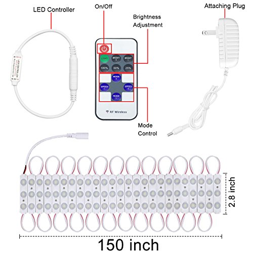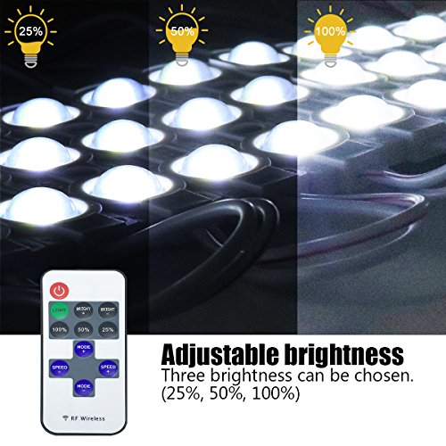 - ADJUSTABLE BRIGHTNESS: The remote with dimmer can adjust the brightness and lighting mode. Turn on/off at any time with the wireless remote and you can set it to the desired brightness. Each Led light can last over 50000 hours.