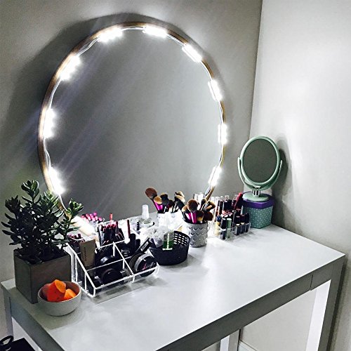 - SUITABLE ANY MIRRORS: The Led Mirror Lights suitable for most makeup or bathroom vanity mirror. The extended wired gap between lights make it easy to customize your mirror. The length of the LED strip approximately 12Ft. Each LED module spacing 3.2inch. Power cord length: 5ft. The extra lights can be cut off.