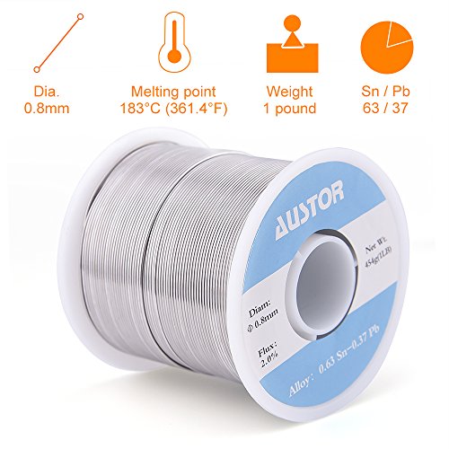 Austor 454g (1lb) Activity Solder Wire 63/37 (Sn 63%, Pb 37%), 0.8mm Diameter with Rosin Core