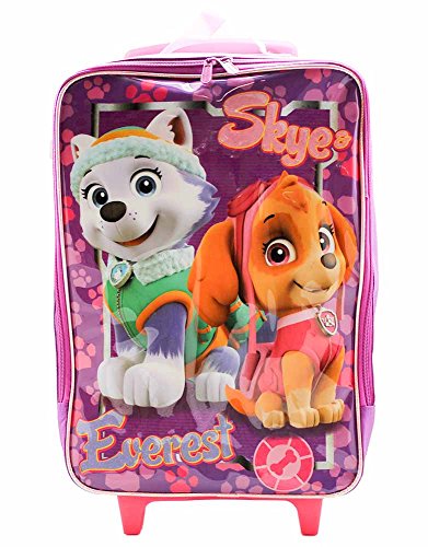 -. Brand : Nickelodeon Universe -. Color : Pink -. Department : girls -. EAN : 0000073626596 -. Feature : 12" x 16" x 4" / Two zippers and one storage area / Roller bag with two wheels and handle / Features Skye and Everest -. Model : PG27594-SC-PU -. PackageQuantity : 1 -. ProductGroup : Apparel -. ProductTypeName : LAGE -. Size : Medium -. Title : Paw Patrol Skye and Everest Girls Suitcase -. UPC : 000073626596