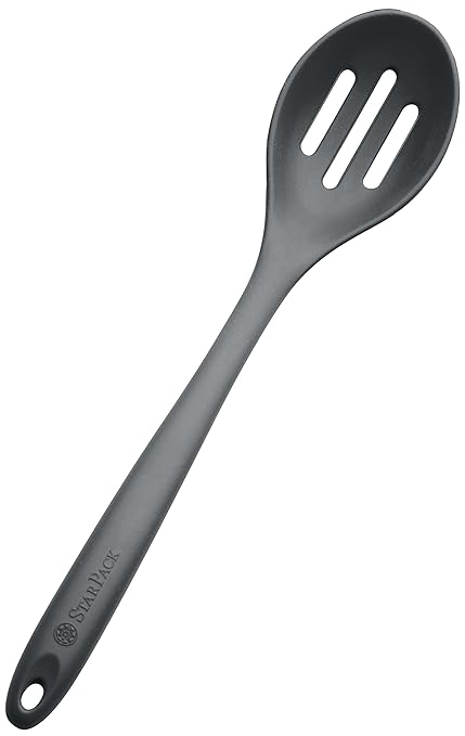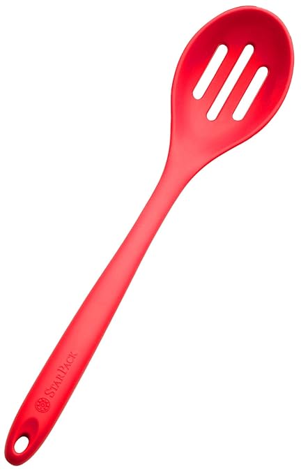 - ★ DESIGNED FOR DURABILITY, EASE OF USE & EASY CLEAN UP: With a strong nylon core, ergonomically designed handle and the perfectly shaped slotted scoop head, this slotted spatula spoon makes light work of draining and serving the trickiest of food items. And StarPack's premium non-stick silicone is literally the easiest substance to clean. Simply wipe this slotted ladle spoon under hot water or throw it in the dishwasher.