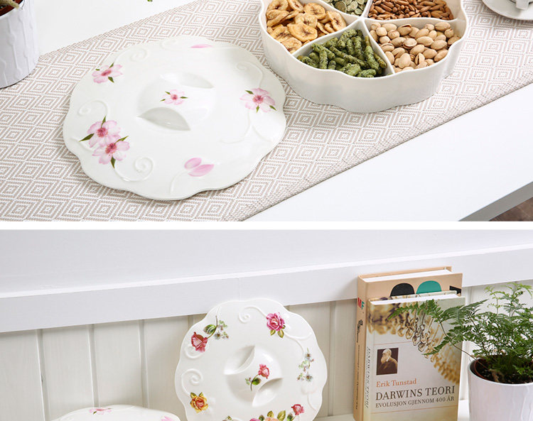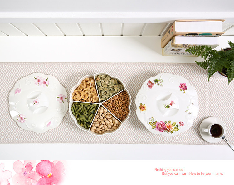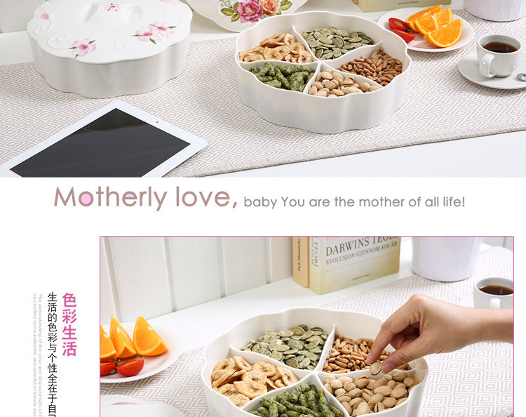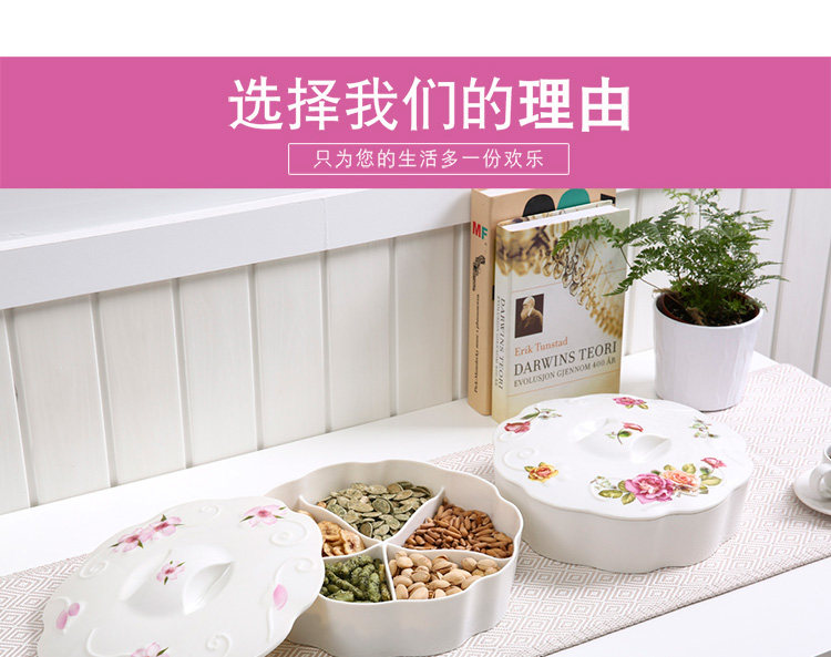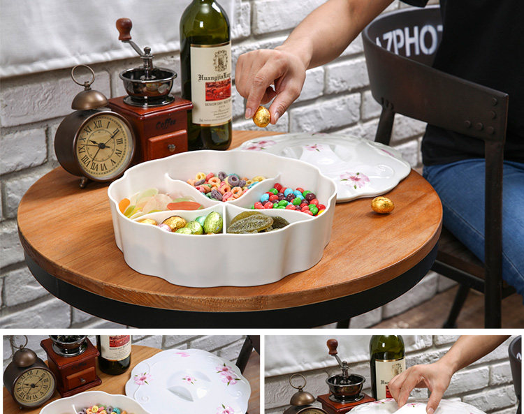 欧式创意分格带盖过年春节糖果盘现代客厅家用瓜子干果盘 北欧风