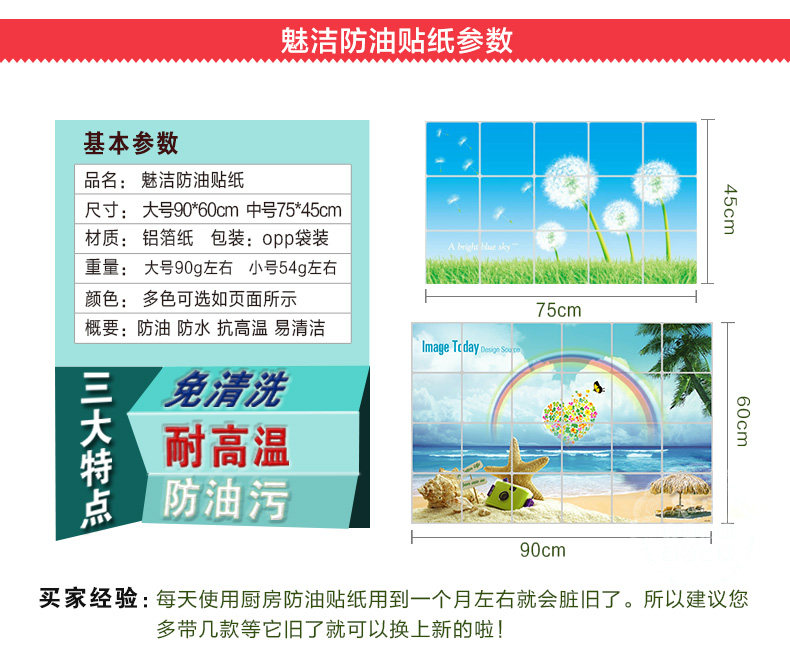 大号厨房防油贴纸吸油烟机耐高温油烟贴铝箔隔油墙贴纸