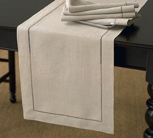 Product Description This beautiful table runner in modern design will add a luxurious touch to your seasonal table. Classic handmade hemstitch design adds interest to this tablecloth. 0
