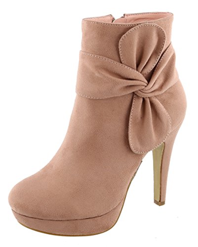 Top Moda Women's Side Bow Knot Platform Stiletto High Heel Ankle Bootie