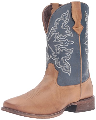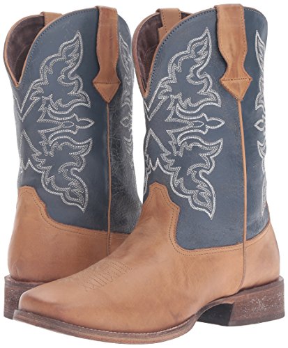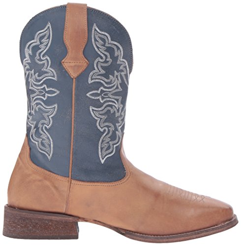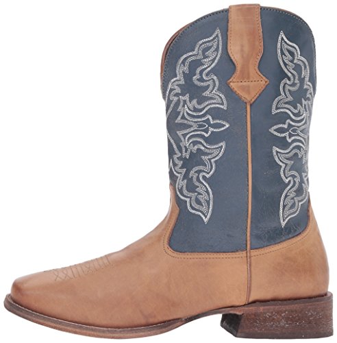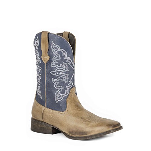 Studio : Roper Publisher : Roper Binding : Shoes Product Description Roper’s rowdy boot is a great choice for everyday wear, this wide square-toe boot is crafted from premium, full-grain leather with a navy shaft. It's unlined for flexibility, and outfitted with a leather outsole. It has a padded insole for extra comfort and has a white western stitch design on the shaft. 0