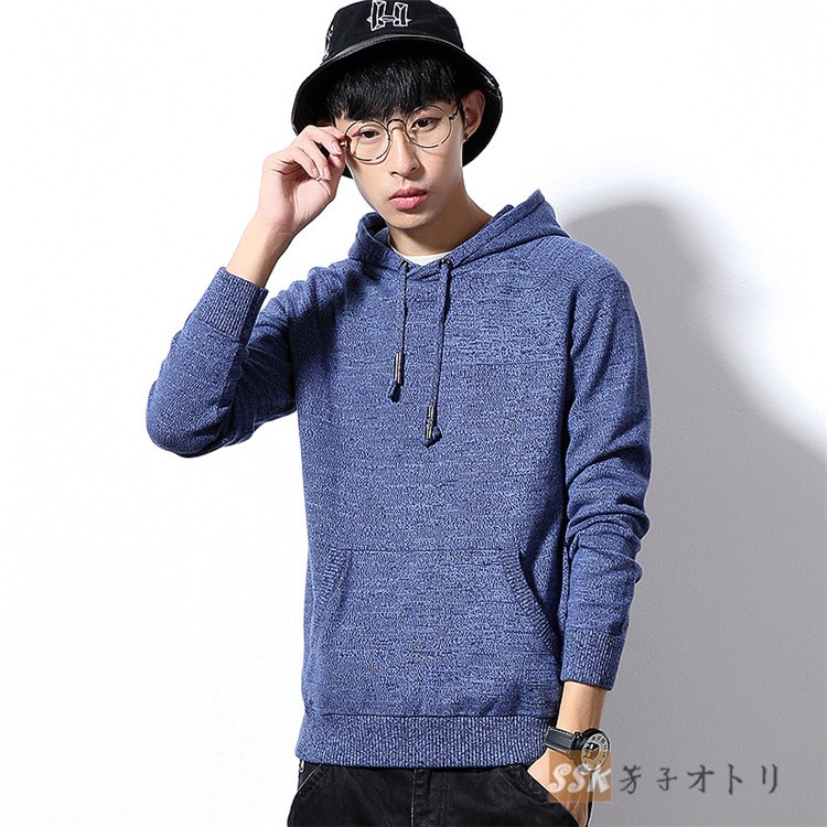 カットソー ニットセーター メンズ ニット 部屋着 フード付き ニットウェア 長袖セーター セーター ルームウェア 無地 防寒着 秋