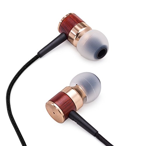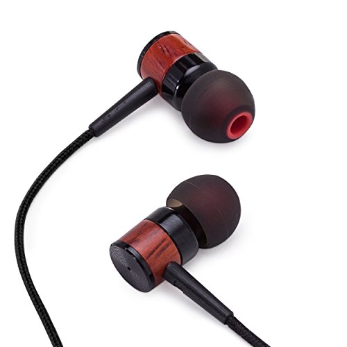 -. Feature : In-ear noise cancelling earphones made from genuine wood to deliver deep, rich sound across a wide frequency range / Long 4.2 feet [129cm] tangle free extended cord threads comfortably through clothing and bags / Three Pairs of silicone ear tips for a customized fit (S/M/L) / Lightweight, comfortable and stylish design with tangle-free cable / Gold plated plug compatible with iPhone, iPad, Samsung Galaxy, and Android smartphones