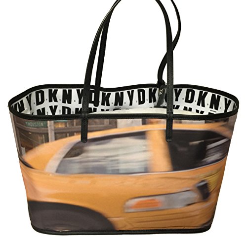Stylish, practical and roomy reversible tote with matching wristlet and logo stamped on sturdy coated canvas.