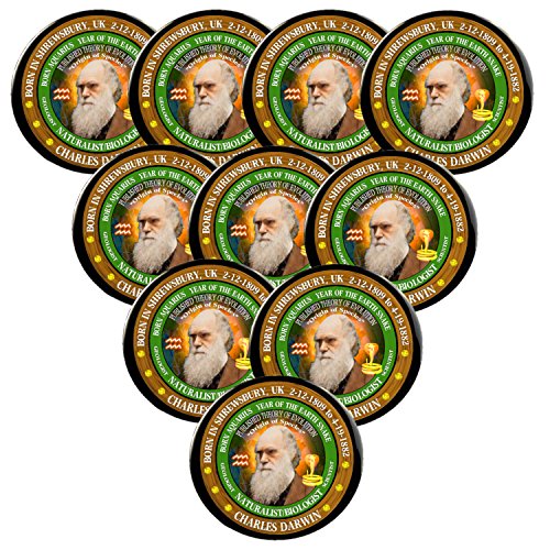 Binding : Apparel Product Description Charles Darwin Pin-back button, Biologist Born Aquarius 2-12-1809 Earth Snake .Charles Darwin was born in Shrewsbury, UK on 2-12-1809 in astrology sign Aquarius and Chinese zodiac year of the earth snake .Charles Darwin was a naturalist /biologist who published theory of evolution "Origin of Species" . Bell lived from 3-3-1847 to 8/2/1922 0