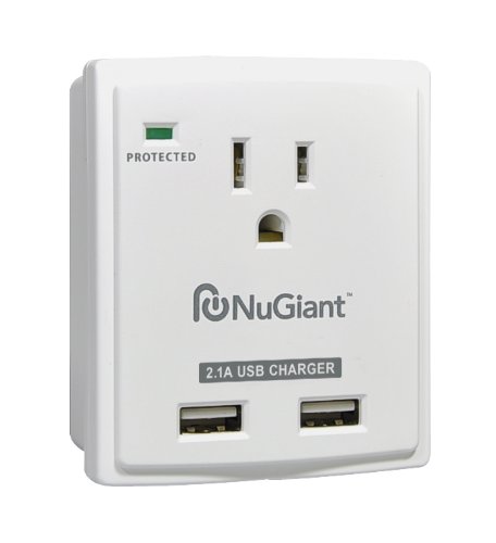 Inland NSS14 Wall Tap Style 1 Outlet Surge Protected 2-USB Charger Ports with 2.1A for iPad