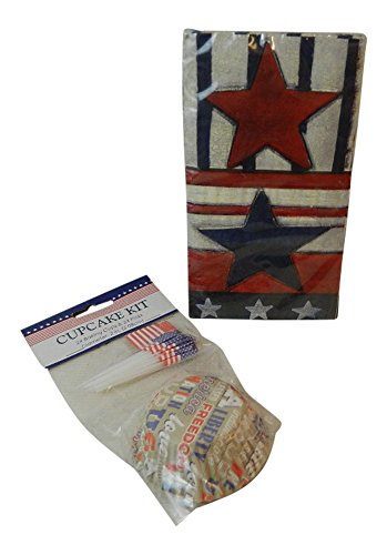 Patriotic Cupcake Liner and Napkins 2 Piece Bundle: 24 liners and Flag picks, and 16 2 ply Napkins