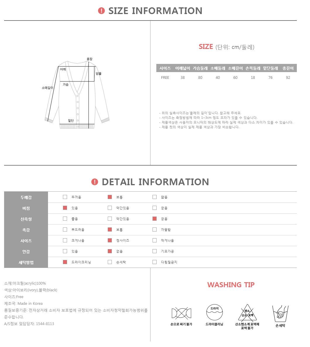 | 특이 사항 | 배송, 변경, 반품 환불에 대한 문의는 위 연락처로 문의 주세요. | ||