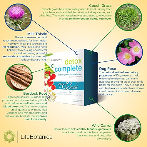 -. Binding : Health and Beauty -. Brand : LifeBotanica -. Color : White -. EAN : 0860230000023 -. Feature : In 21 DAYS: Complete Body Day and Night Detox and Cleanse (126 capsules, 3 per day, 3 per night) plus Bonus e-book LifeBotanica's Award Winning 21 Day Detox Diet Plan for Life Extension... / ALL NATURAL: LifeBotanica Detox Complete cleanses your body at a cellular level, making it far more efficient than simple colon cleansing alternatives - not laxative based / A TOTAL BODY CLEANSE that has been specifically designed to keep your body healthy and hydrated during the detoxing process. You'll wake up feeling better, lighter and energetic, a totally new person / EUROPEAN FORMULA: Clinically Proven handpicked natural and pure herb ingredients that have been scientifically proven to help you achieve a healthier look and promote "Beauty From Within" / PLUS AWARD WINNING PROGRAM: Our LifeBotanica 21 Day Detox Diet Plan for Life Extension, the Essential Guide to Health Detox Diets - bonus eBook -. IsAdultProduct : 0 -. Label : Life Botanica -. Manufacturer : Life Botanica -. NumberOfItems : 2 -. PackageQuantity : 2 -. ProductGroup : Health and Beauty -. ProductTypeName : HEALTH_PERSONAL_CARE -. Publisher : Life Botanica -. Studio : Life Botanica -. Title : LifeBotanica: 21 Day Detox Complete Day and Night Dual Pack. Liver, Kidney and Pancreas Cleanse To Support Detox, Weight Loss and Increased Energy Levels. Unique "Beauty from Within" European Formula -. UPC : 860230000023