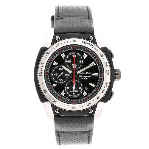 세이코import Seiko 세이코 Mens SNAD47P2 스테인레스 스틸 Case Black Leather Strap Alarm 크로노그래프 남성용 맨즈 손목시계 (병행수입)