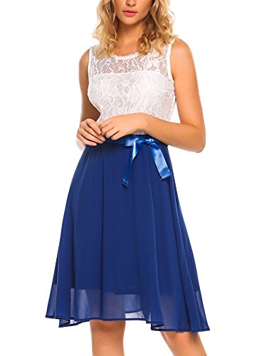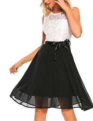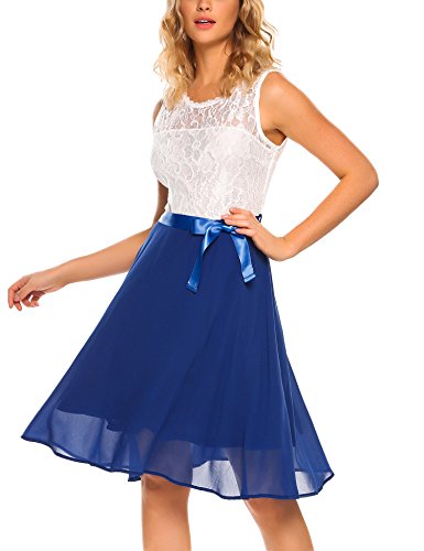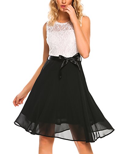 O-neck and sleeveless, floral lace patchwork with flattering satin waistband