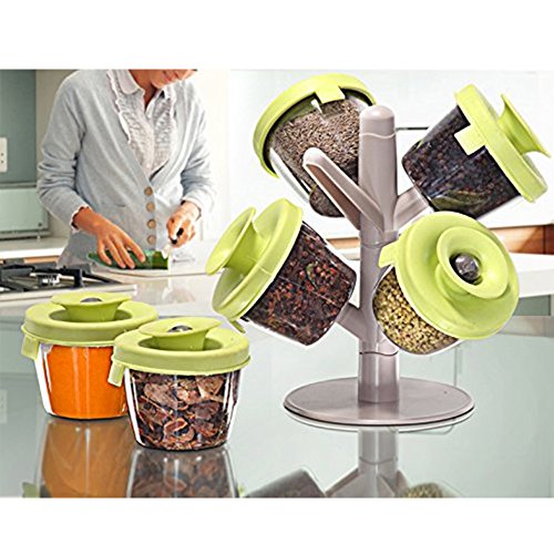 -. Title : Spice Rack, TwoS Creative Seasoning Pot Six Piece Suit Spice Rack Seal Pot Tree Spice Rack