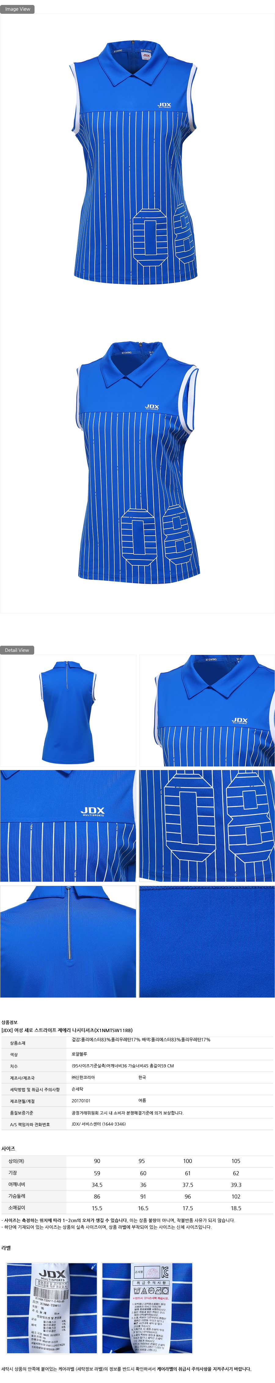 | 소재 | 겉감 폴리에스터83%폴리우레탄17% 배색 폴리에스터83%폴리우레탄17% |