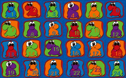Studio : KidCarpet.com Publisher : KidCarpet.com Binding : Kitchen Product Description Kid Carpet brings you a large selection of rugs that works perfectly in any space including classrooms, kid play areas or bedrooms! they offer a crisp, detailed image with superior definition and clarity. They manufacture their own products and pass down the savings to you. With this classroom seating rug, you can create a fun, warm and inviting area for kids to learn along side these 24 eager and wide-eyed cute little creatures. 0