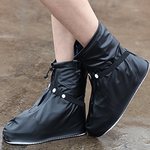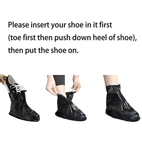 - USAGE INSTRUCTION: Please insert your shoe in it first (toe first then push down heel of shoe), then put the shoe on. Tightness Zipper & Elastic Cord with wide mouth design; easy to put on and off; Notice: Please tight the string uptop to prevent water from sleaking into their shoes.
